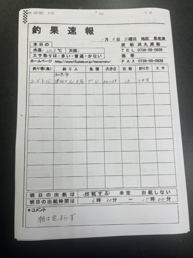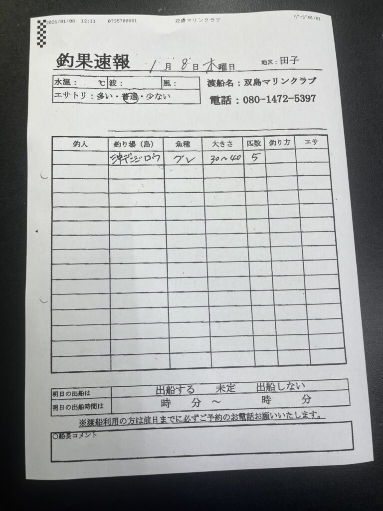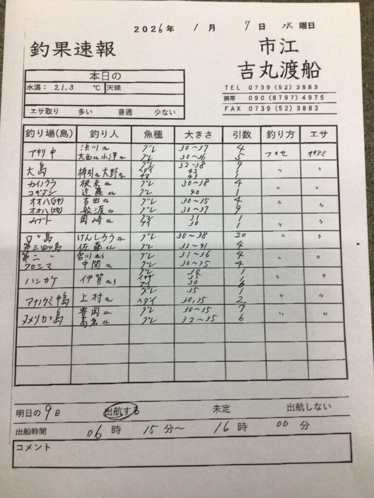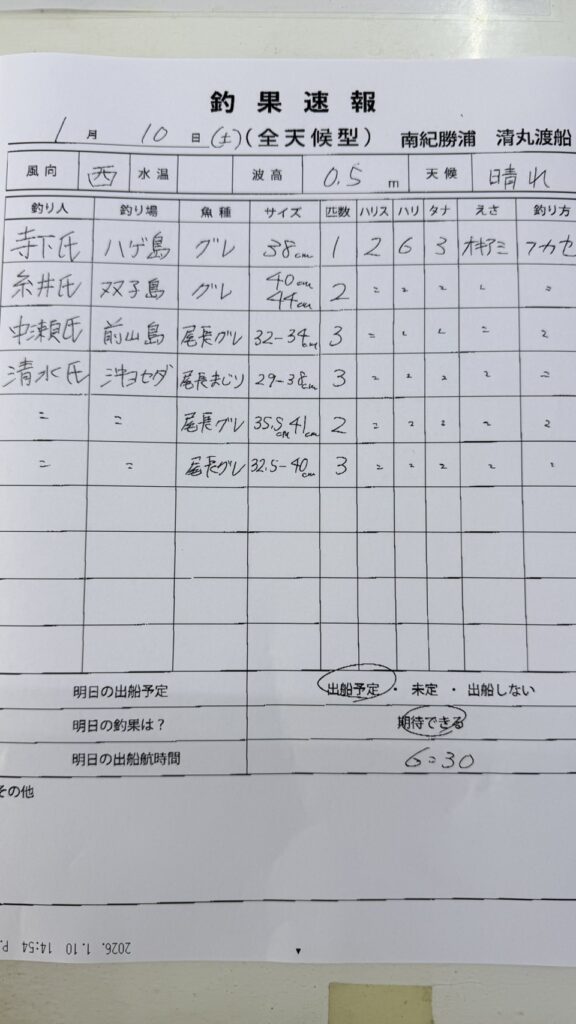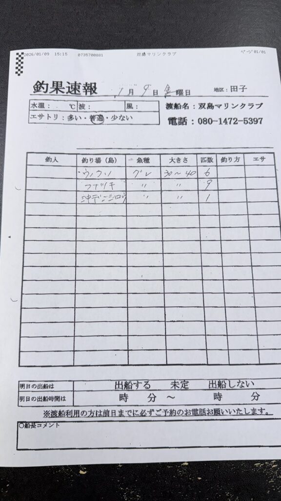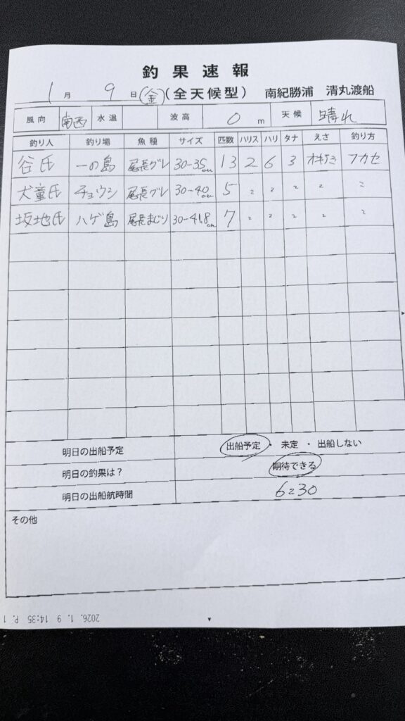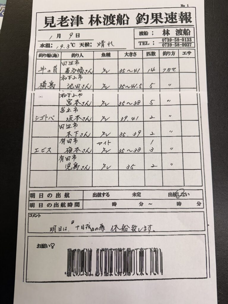 1月9日(金)田辺・黒田渡船さんの釣果