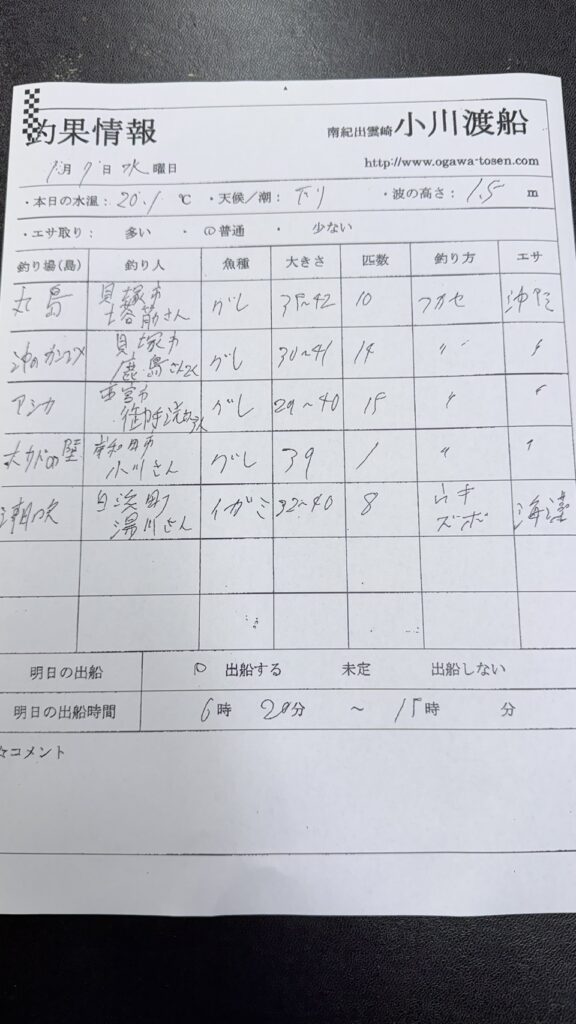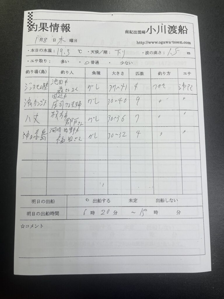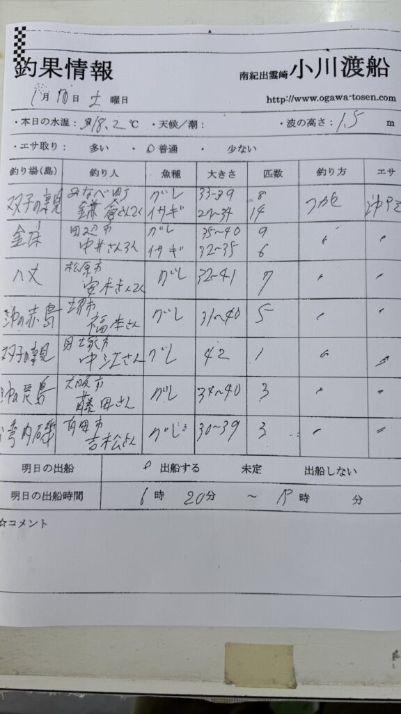 1/9串本町出雲・小川渡船さん釣果