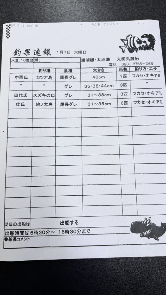 1/7太地町・太師丸渡船さん釣果