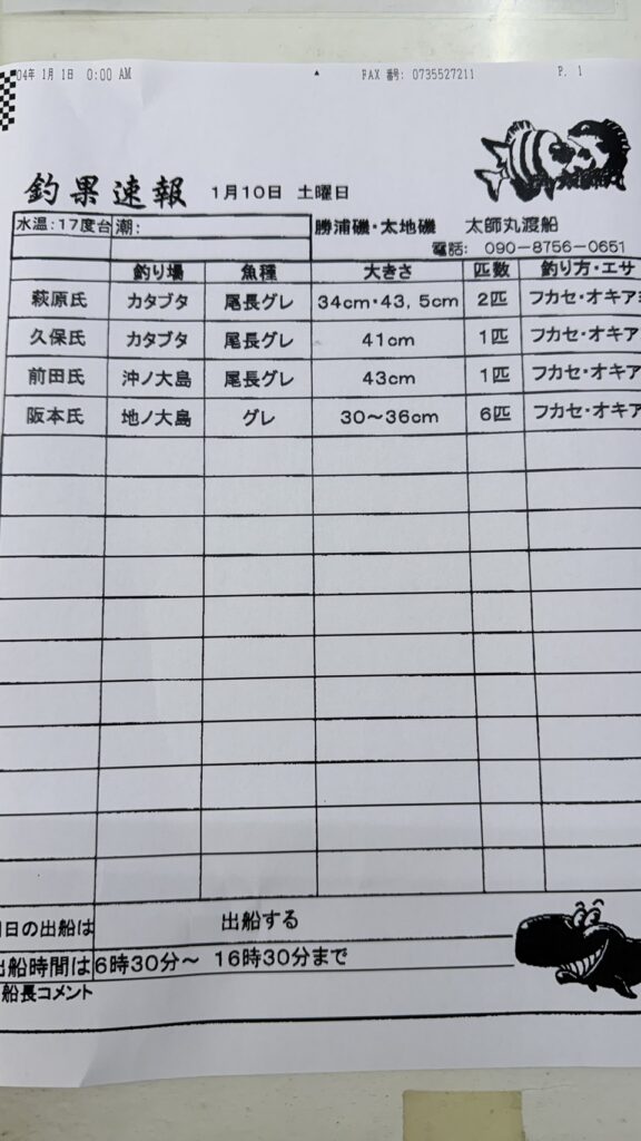1/10太地町・太師丸渡船さん釣果
