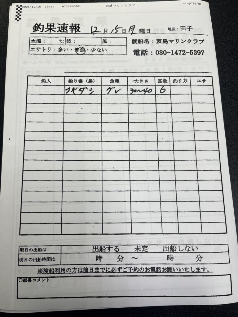 12/15串本町田子・双島マリンクラブ渡船さん釣果