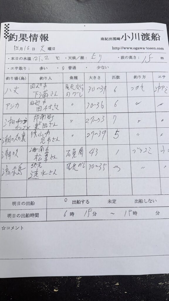 12/16串本町田子・双島マリンクラブ渡船さん釣果