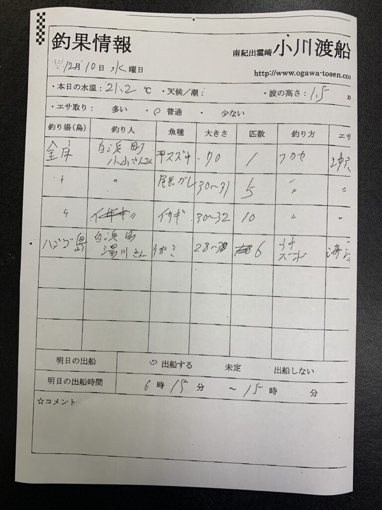 12/10すさみ町見老津・林渡船さん釣果