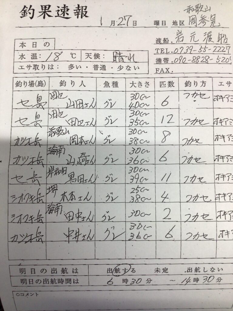 1/27串本町田子・双島マリンクラブ渡船さん釣果