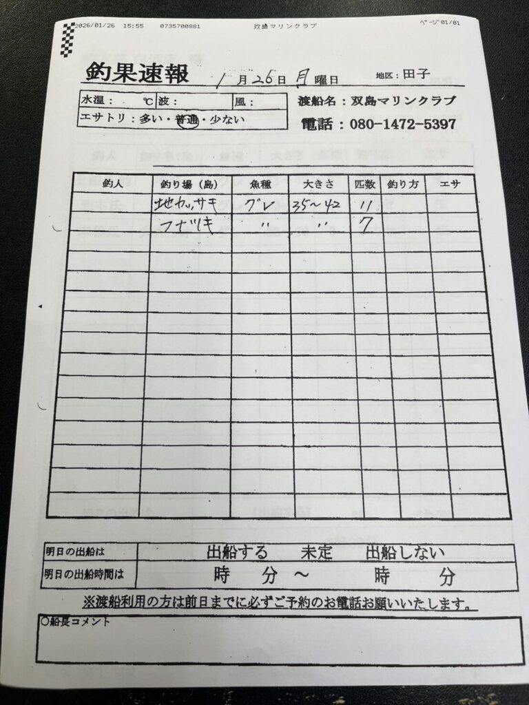1/26串本町田子・双島マリンクラブ渡船さん釣果