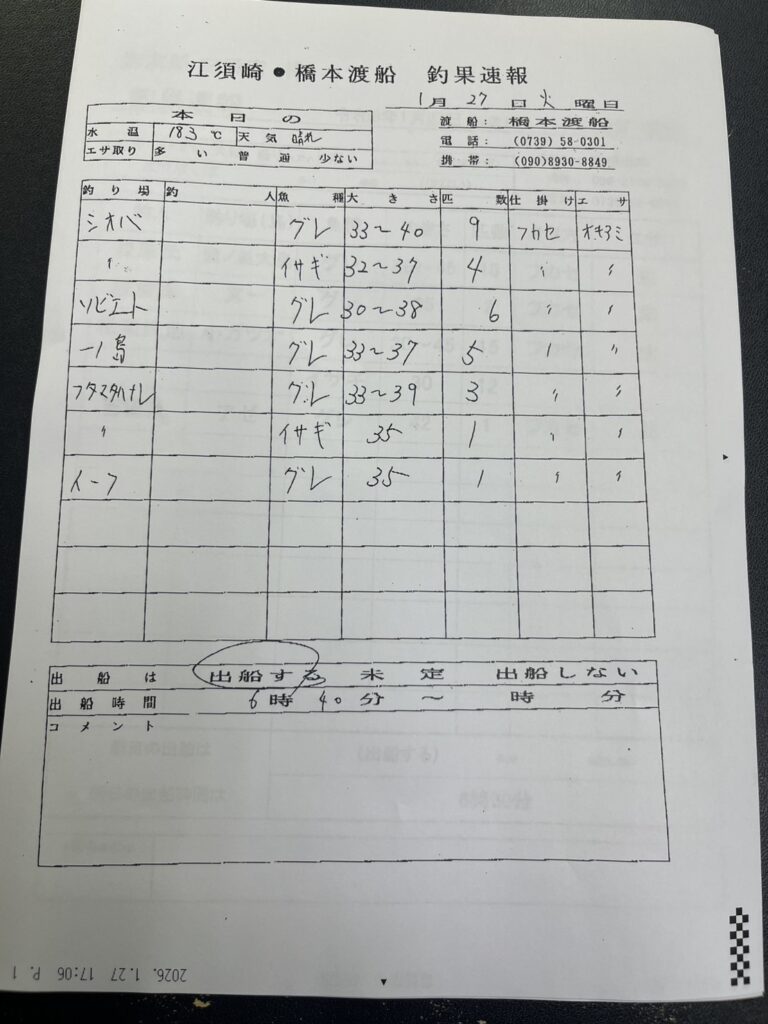 1/26すさみ町江須崎・橋本渡船さん釣果