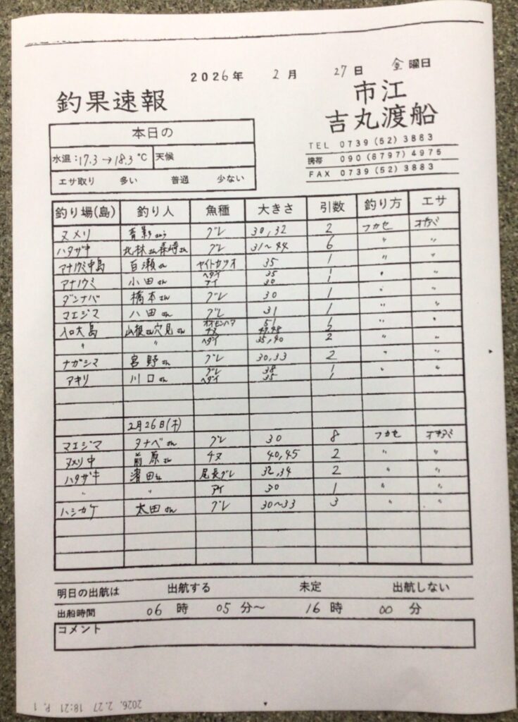 2/26・27 田辺・黒田渡船さんの釣果