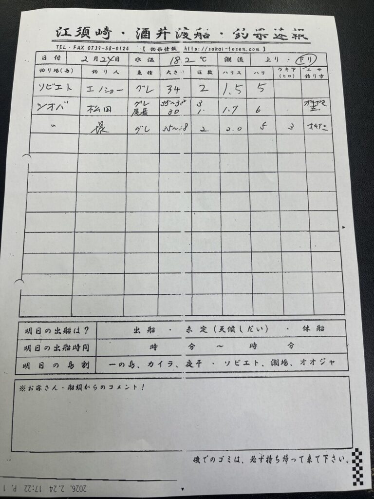 2/24すさみ町江須崎・酒井渡船さん釣果