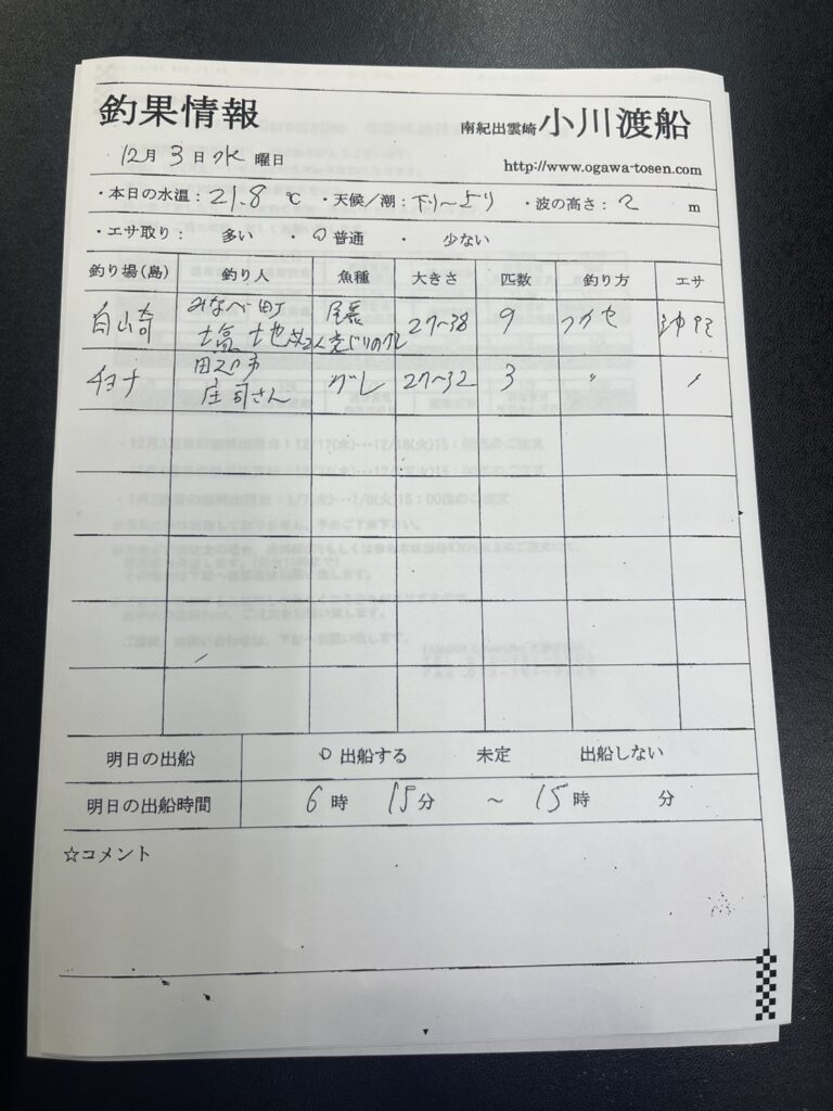 12/3串本町出雲・小川渡船さん釣果