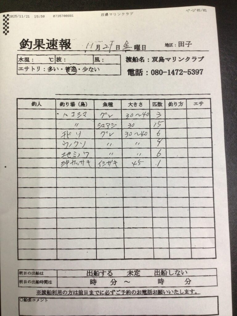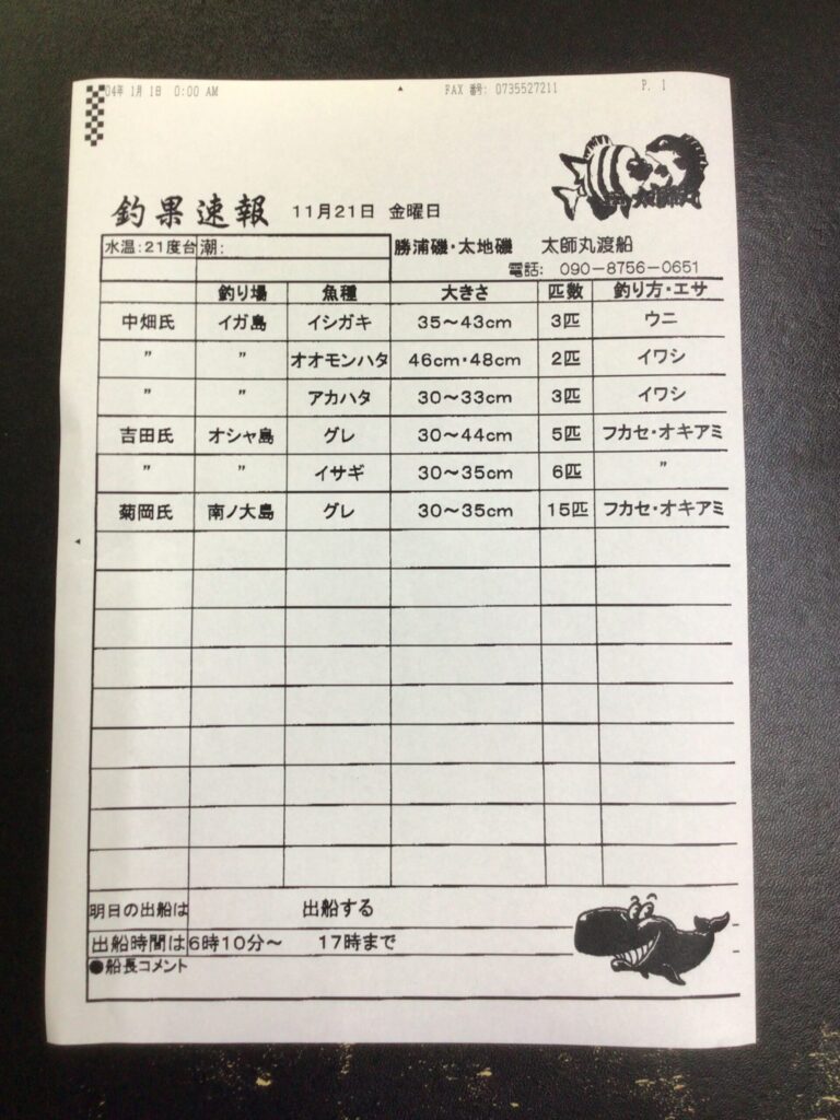 11/21 串本町田子・双島マリンクラブ渡船さん釣果