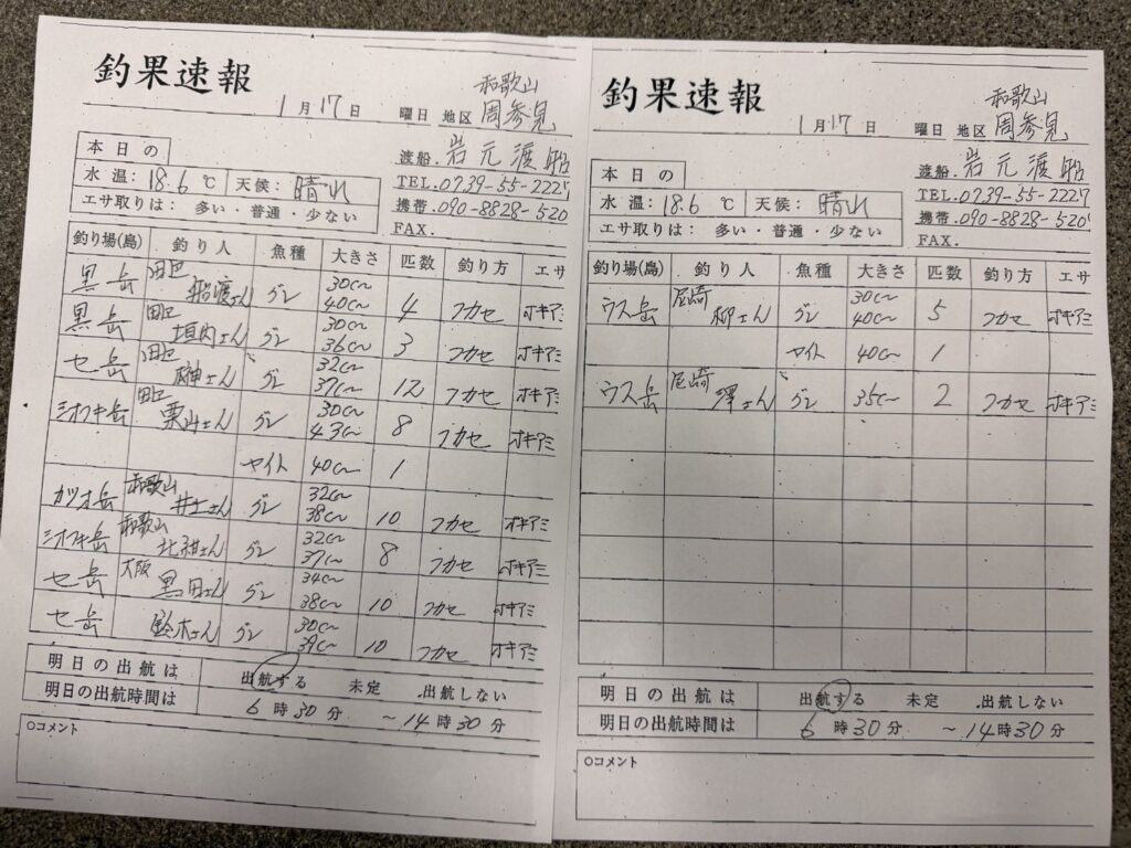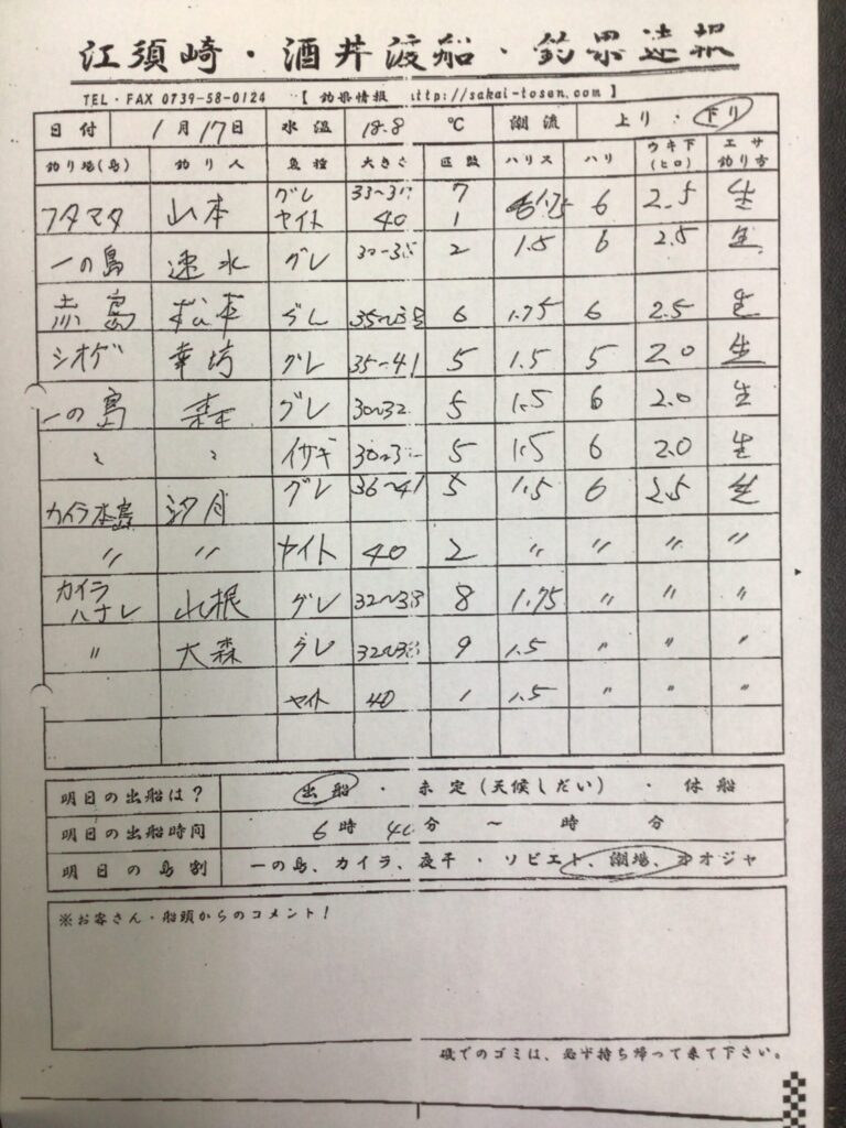 1/17すさみ町江須崎・酒井渡船さん釣果
