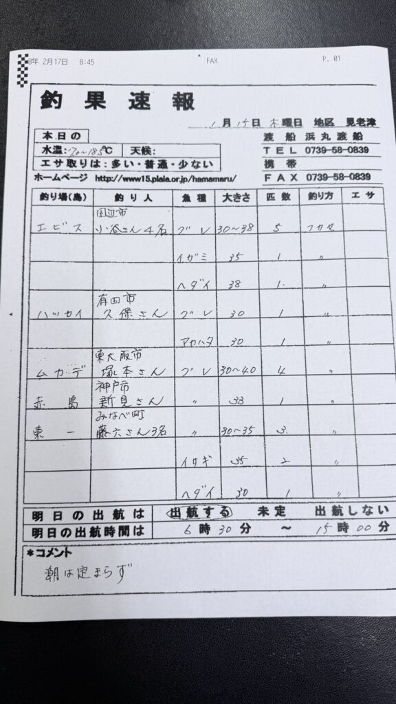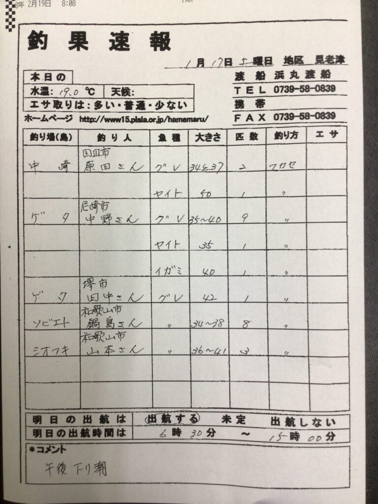 1/17すさみ町見老津・浜丸渡船さん釣果