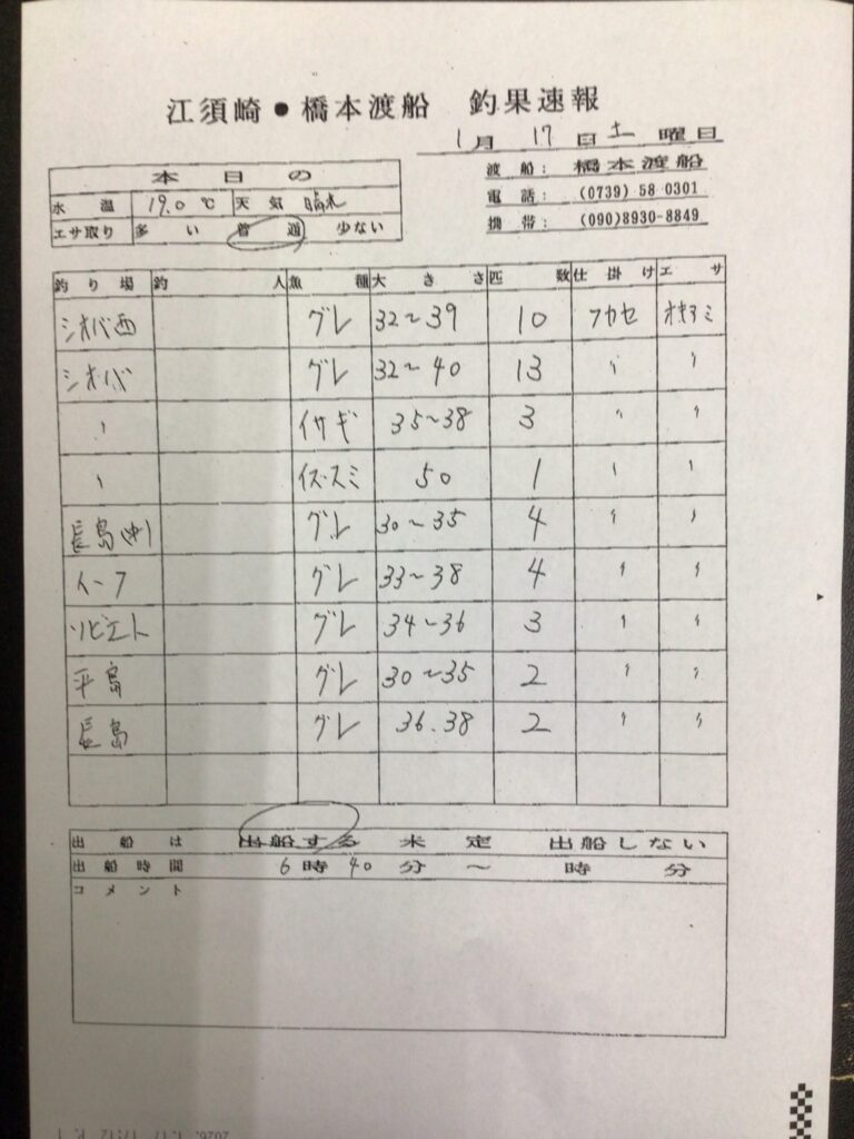 1/17すさみ町江須崎・橋本渡船さん釣果