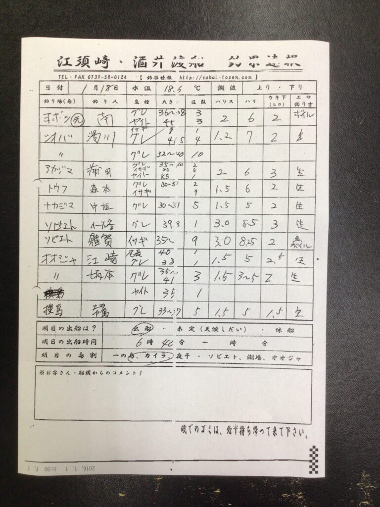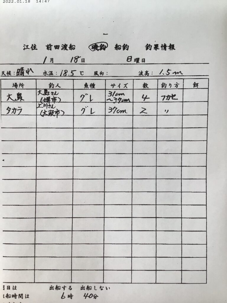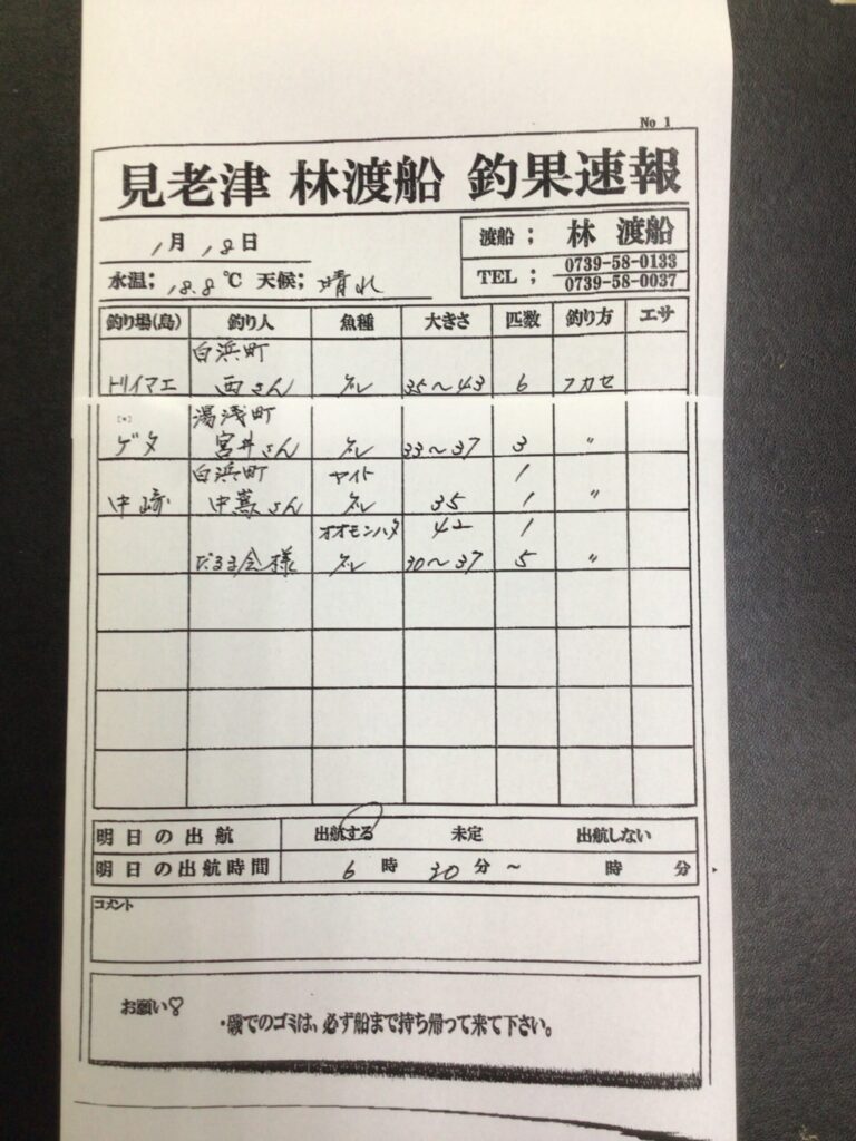 1/18(日)すさみ町江住 前田渡船さん釣果