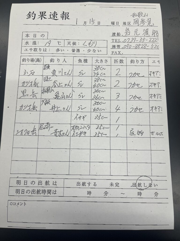 1/15すさみ町見老津・浜丸渡船さん釣果