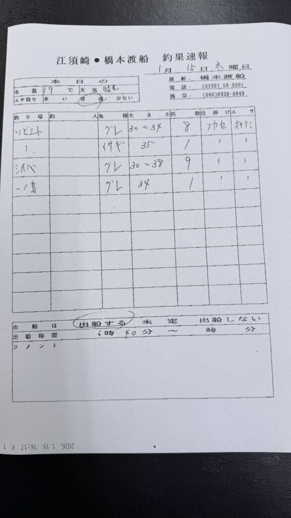 1/15すさみ町江須崎・橋本渡船さん釣果