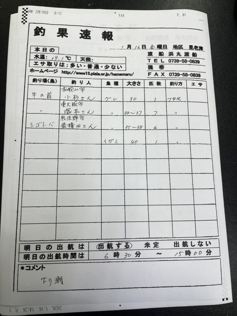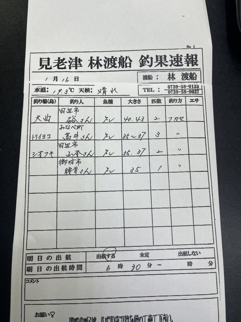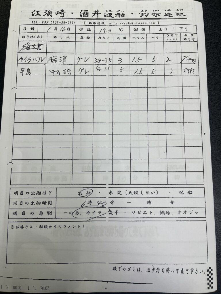 1/16すさみ町江須崎・酒井渡船さん釣果