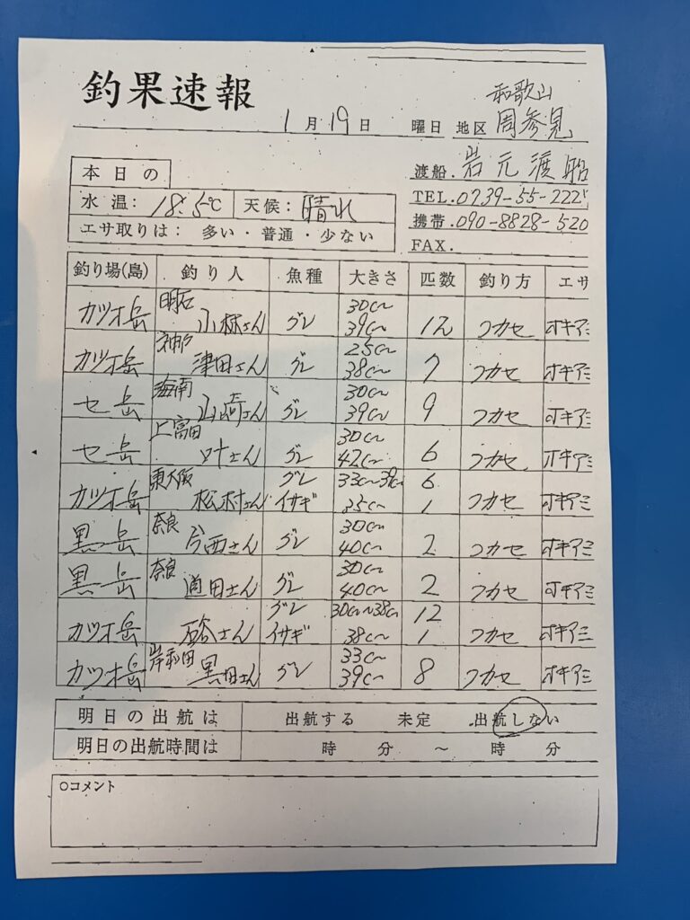 1/19すさみ町見老津・浜丸渡船さん釣果