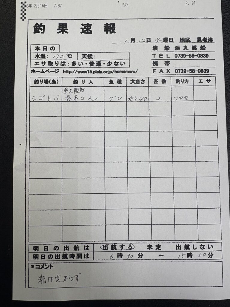 1/14すさみ町見老津・浜丸渡船さん釣果
