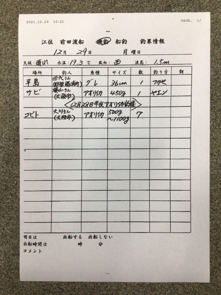 12月29日(月)すさみ町江住 前田渡船さん釣果