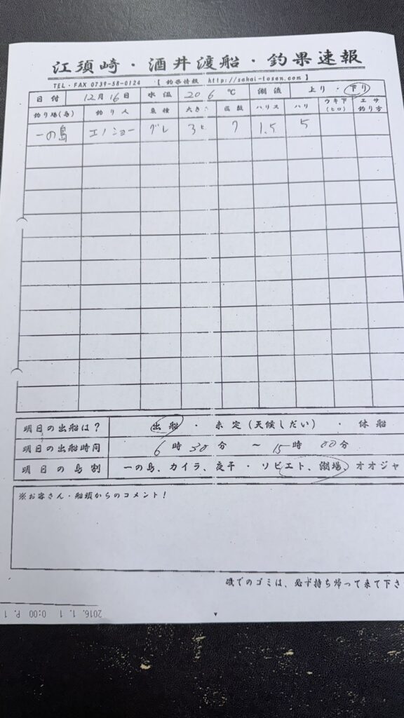 12/16すさみ町見老津・林渡船さん釣果