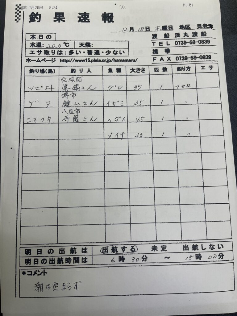 12/20すさみ町見老津・浜丸渡船さん釣果