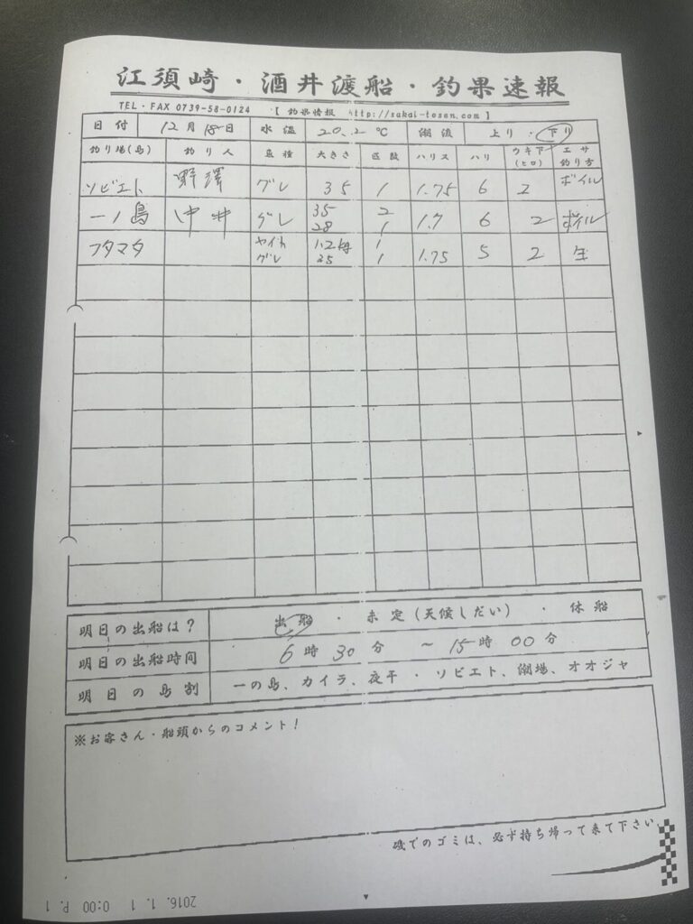 12/16すさみ町江須崎・酒井渡船さん釣果