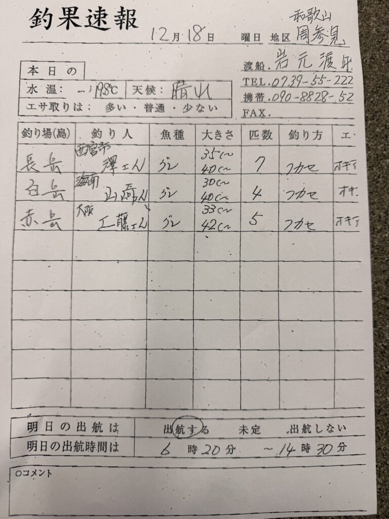 12/18 すさみ・岩元渡船さんの釣果