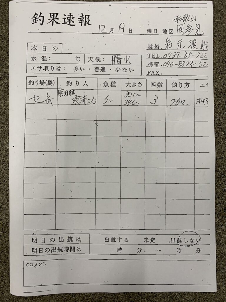 12/19すさみ町 岩元渡船さん釣果