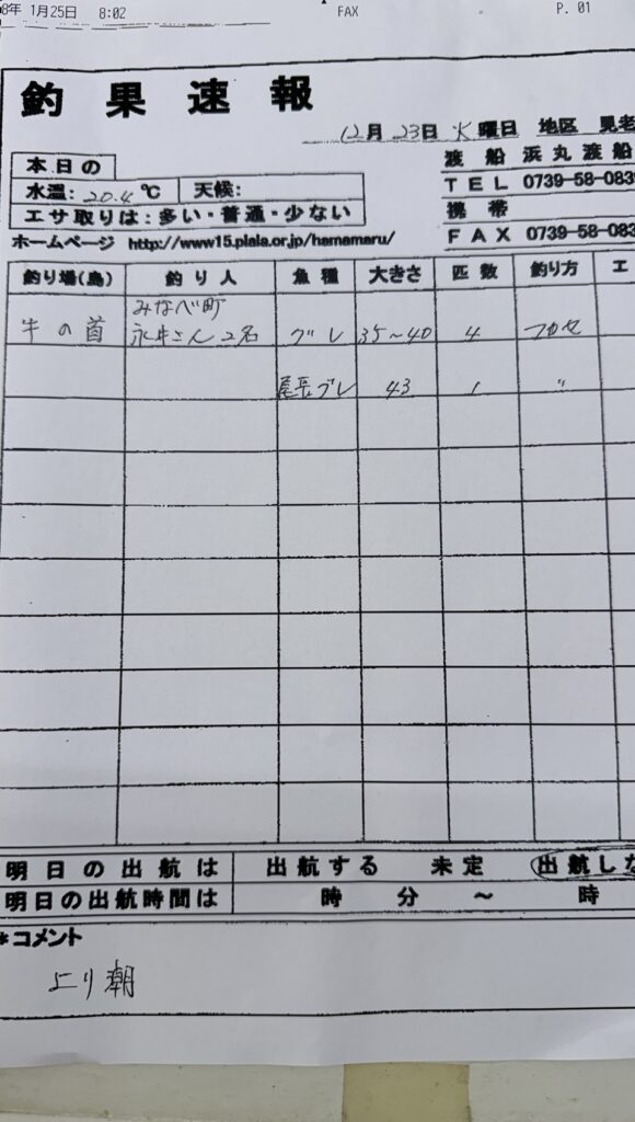 12/23すさみ町見老津・浜丸渡船さん釣果
