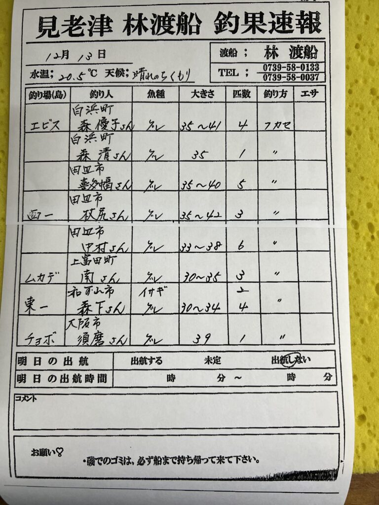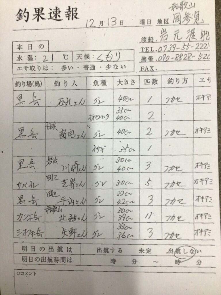 12/13(土)すさみ町岩元渡船さん釣果