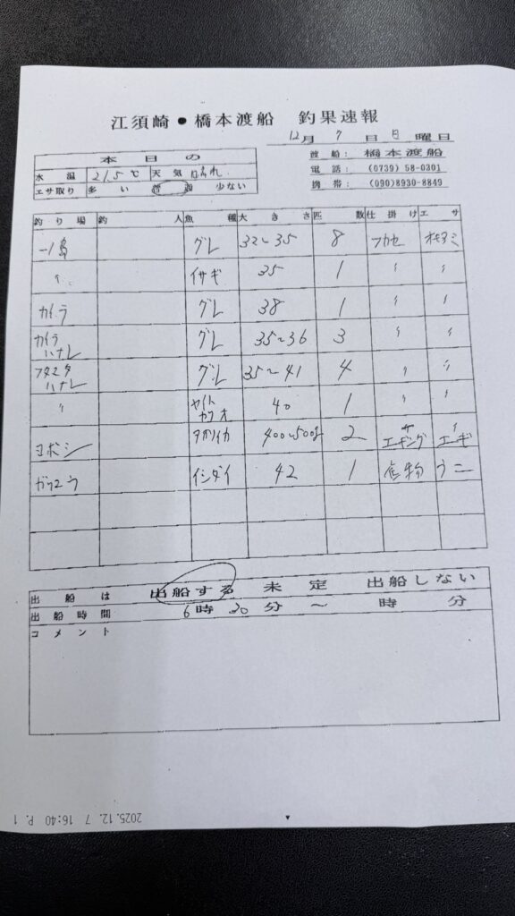 12/7すさみ町見老津・林渡船さん釣果