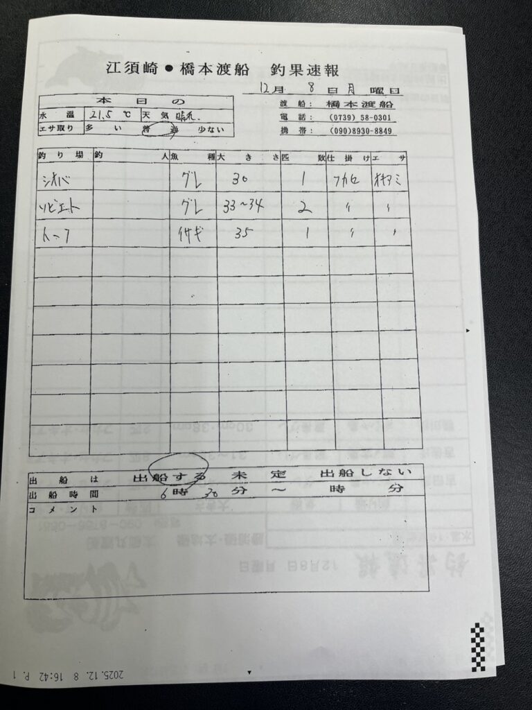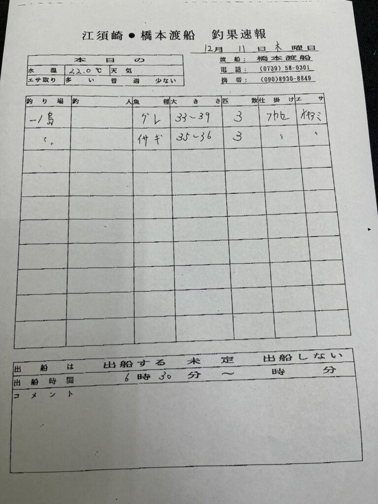 12/12すさみ町江須崎・橋本渡船さん釣果