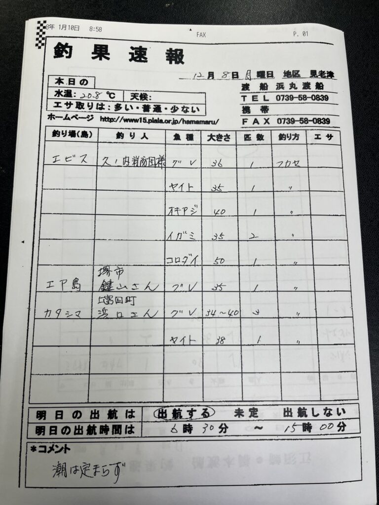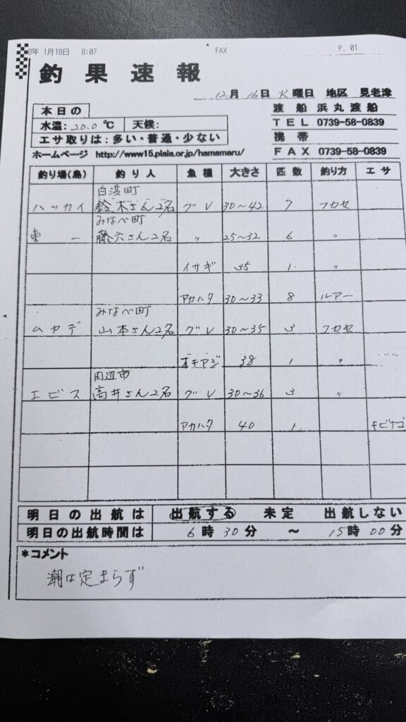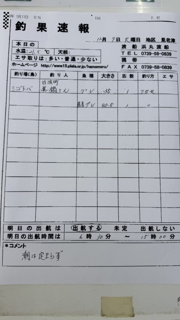 12/8すさみ町見老津・浜丸渡船さん釣果