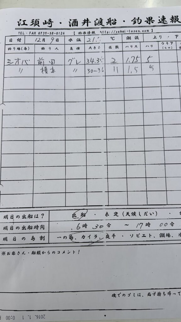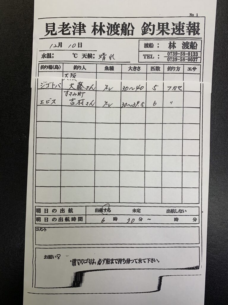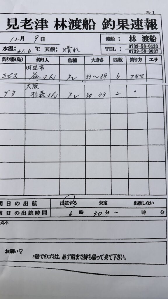 12/9すさみ町見老津・林渡船さん釣果