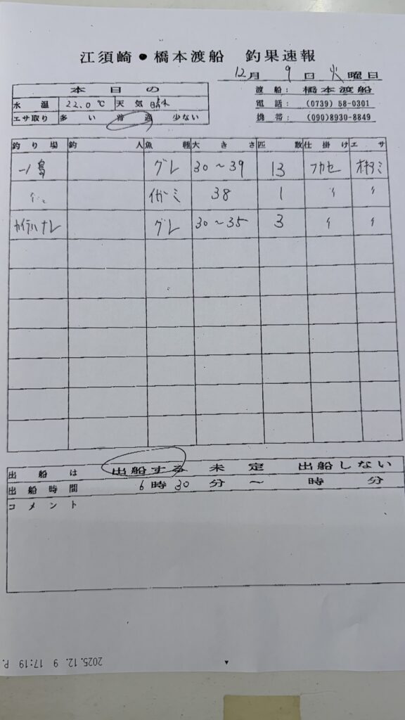 12/9すさみ町江須崎・橋本渡船さん釣果