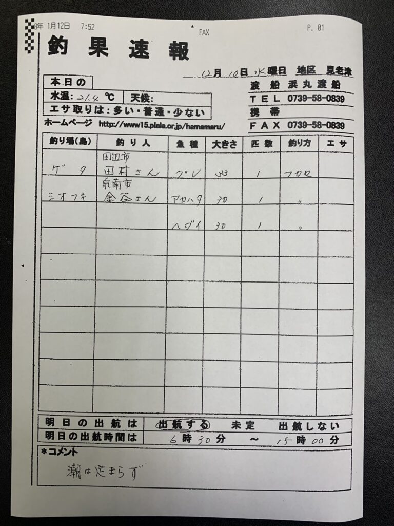 12/12すさみ町見老津・浜丸渡船さん釣果