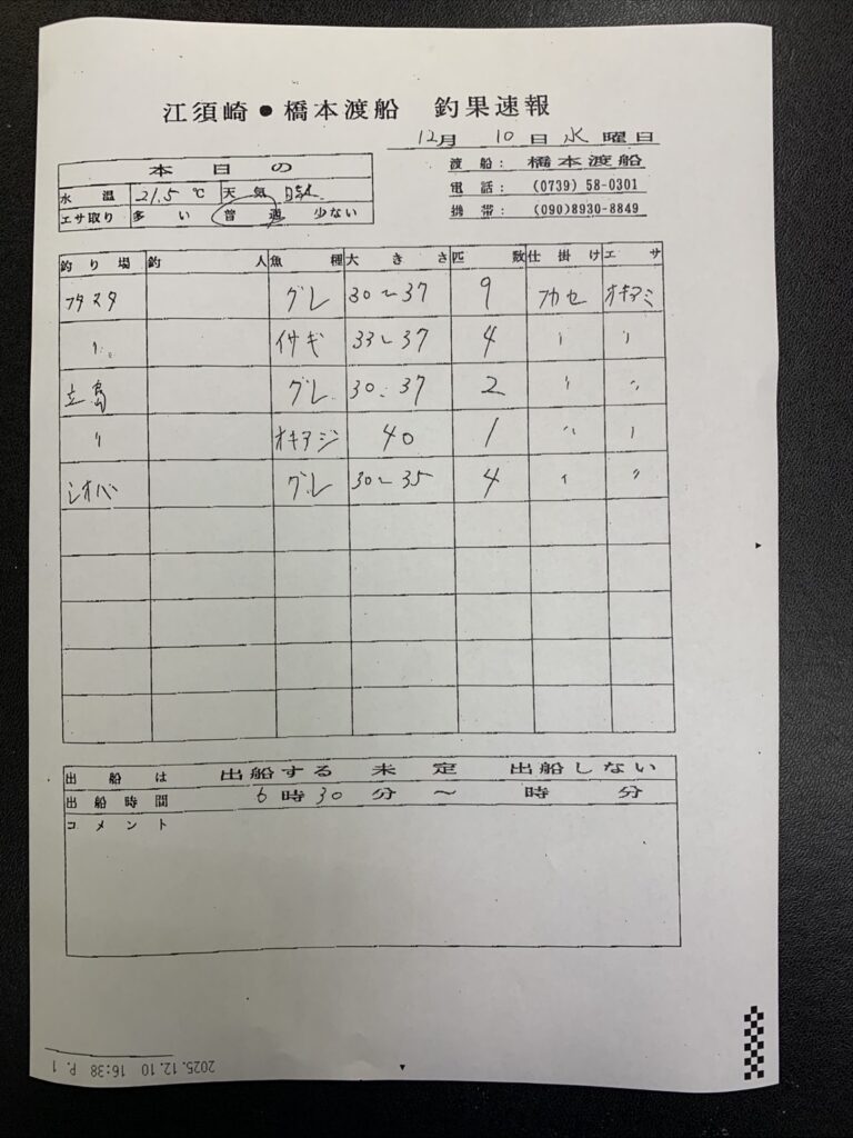 12/10すさみ町見老津・林渡船さん釣果