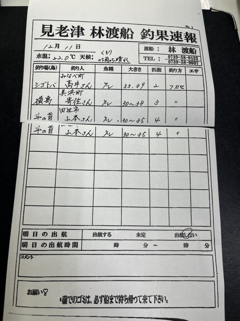12/11すさみ町見老津・林渡船さん釣果