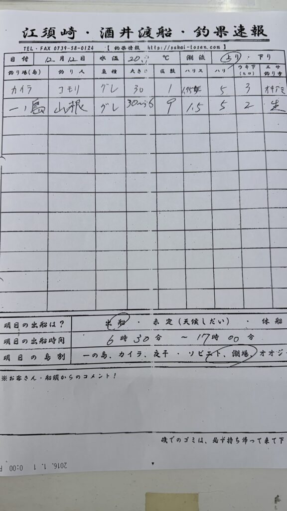 12/16 すさみエリア 岩元渡船釣果