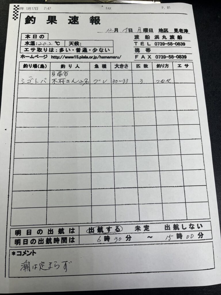 12/15すさみ町見老津・浜丸渡船さん釣果