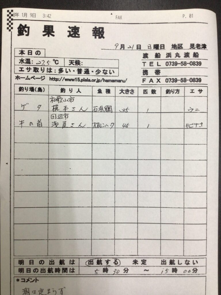 9/21すさみ町見老津・浜丸渡船さん釣果