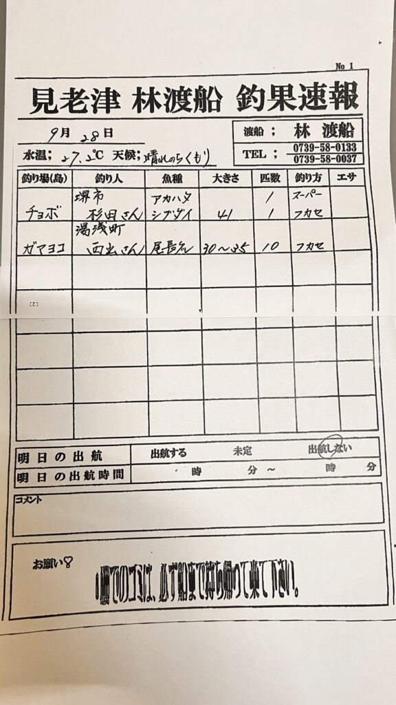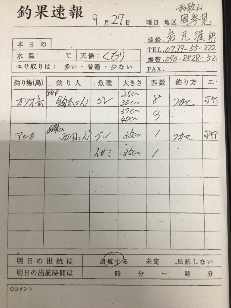 9月27日(土)すさみ町 岩元渡船さん釣果