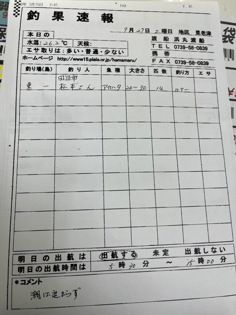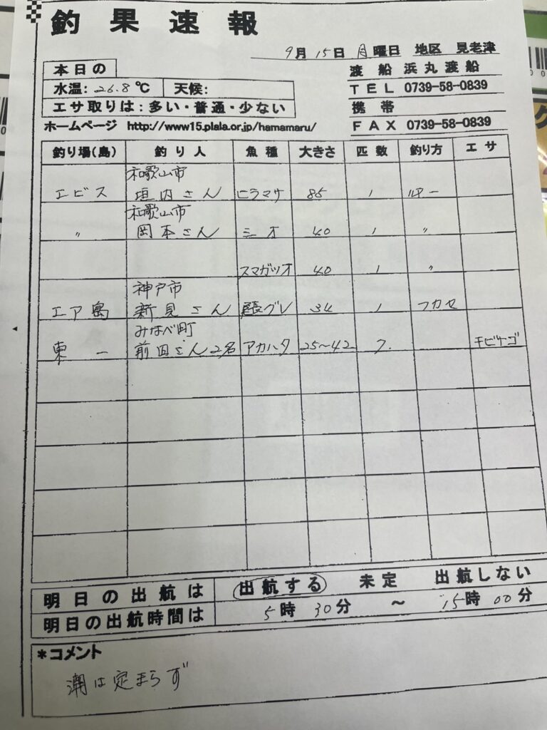 9/15すさみ町見老津・浜丸渡船さん釣果