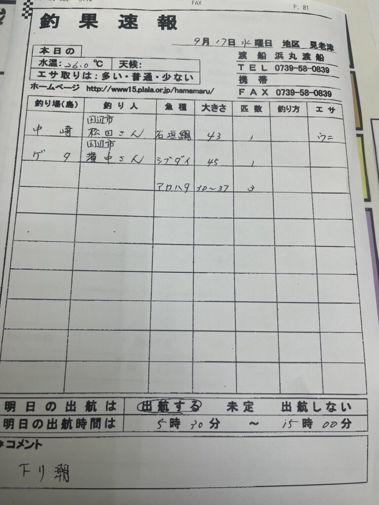9/17すさみ町見老津・浜丸渡船さん釣果