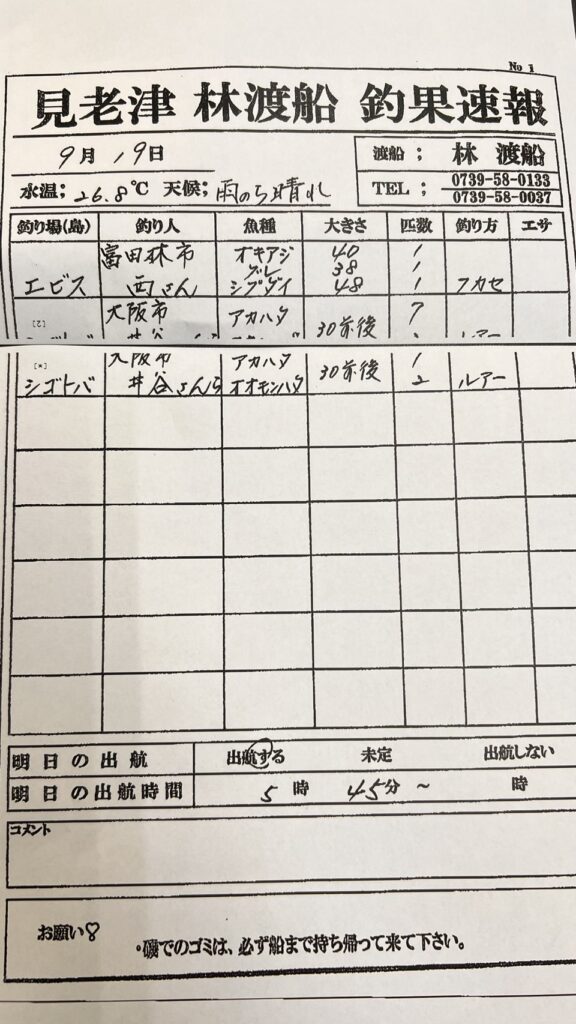9/18すさみ町見老津・浜丸渡船さん釣果
