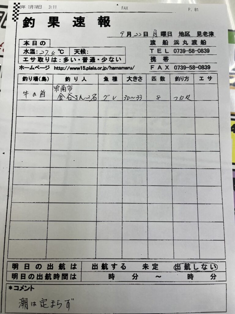 9/22すさみ町見老津・浜丸渡船さん釣果