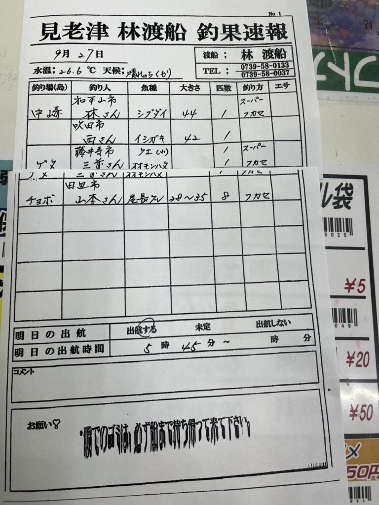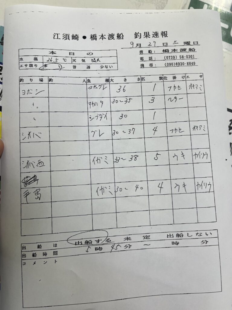 9/27すさみ町江須崎・橋本渡船さん釣果