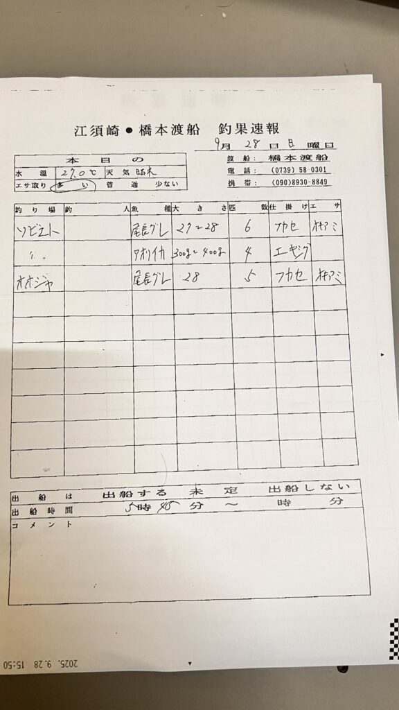 9/28すさみ町江須崎・橋本渡船さん釣果