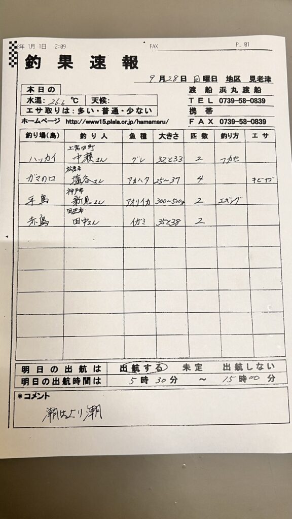 9/27すさみ町見老津・浜丸渡船さん釣果